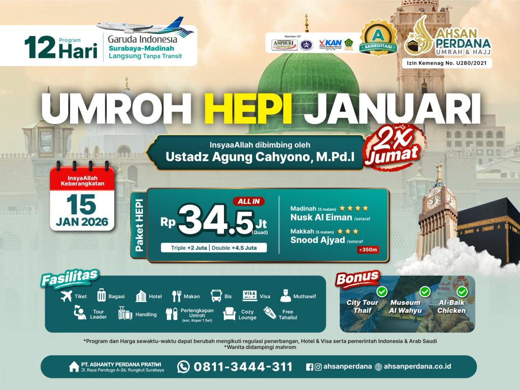 - Pembatalan lebih dari 30 hari sebelum keberangkatan, akan dikenakan biaya administrasi dan biaya-biaya lain yang telah dibayarkan oleh Ahsan Perdana ke vendor.