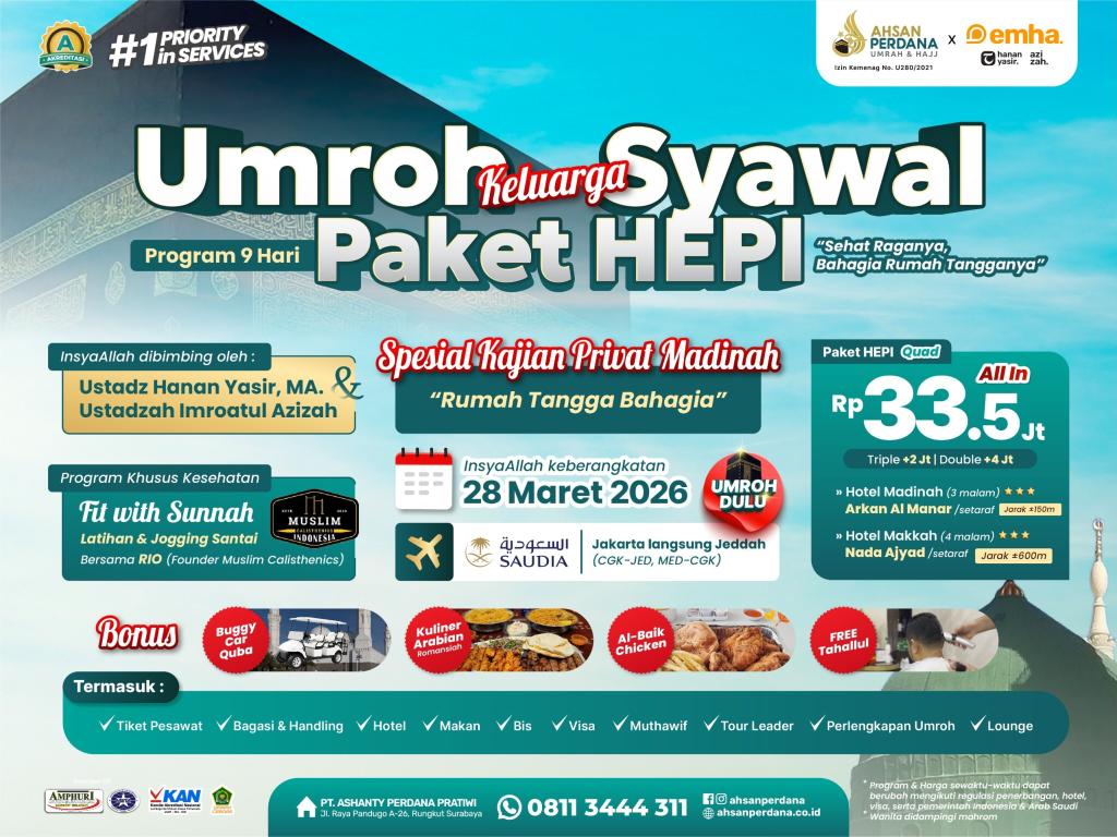 - Pembatalan lebih dari 30 hari sebelum keberangkatan, akan dikenakan biaya administrasi dan biaya-biaya lain yang telah dibayarkan oleh Ahsan Perdana ke vendor.
